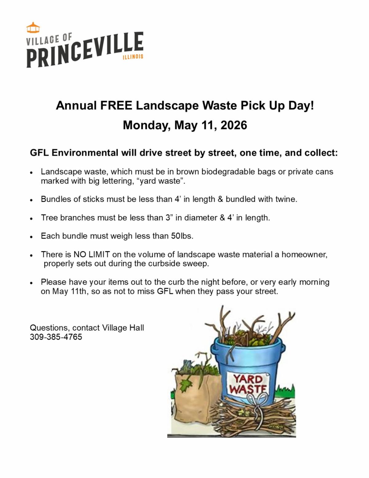Questions, please call Village Hall, 309-385-4765.